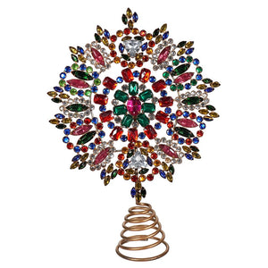 Crafted with care and adorned with an array of radiant rhinestones in every shade of the rainbow, this topper is more than just a finishing touch – it's a statement piece that screams sophistication with a side of sass. From ruby red to sapphire blue, every gemstone gleams and glimmers atop its round wire frame, casting a spell of enchantment over your festive fir.