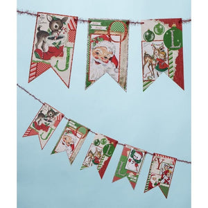 There's a special kind of charm to vintage Christmas postcards and images that reminds you of being a kid and brings to mind classic Christmas songs. Each pennant on this Retro Jolly Garland has an adorable vintage image of reindeer, a snowman, or the big man himself, Santa Claus. JOLLY is spelled out one letter at a time in glitter that pops off the collage style pennants. This garland looks amazing along a mantel with the stockings, hung above a doorway, or anywhere frankly!