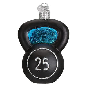 This ornament really looks like a real kettlebell weight! Kettlebells are ball shaped weight made of metal or cast iron with a handle, and come in all different weights that you can use to make the workout harder. A Kettlebell workout is a great way to train the entire body while building endurance, power and cardio-vascular health. We can attest, using kettlebells weekly... this is a great workout! Luckily this ornament doesn't actually weigh 25 pounds like it states! Give this Old World Christmas glass ornament as the perfect gift to anyone that loves to workout.