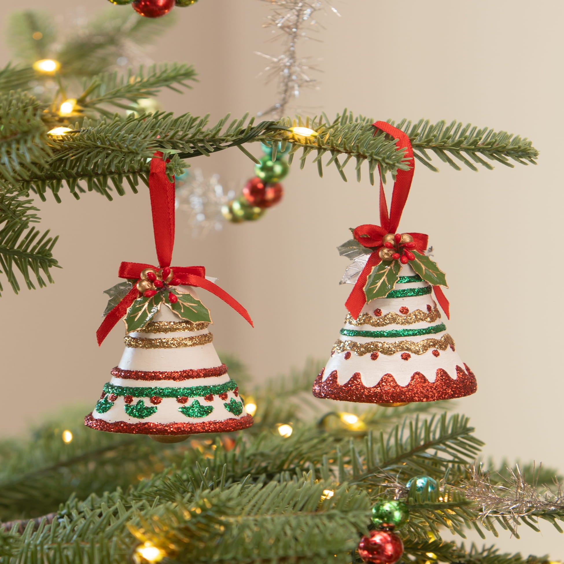 Designed to be hung on a tree, garland, wreath, or even a door handle, these ornaments instantly draw attention with their bright colors and cheerful styling. The crisp white base allows the striped patterns to really pop, while the holly on top adds a familiar seasonal touch that ties them back to classic holiday décor. Whether your style leans nostalgic, eclectic, or just plain fun, these bells fit right in without trying too hard.