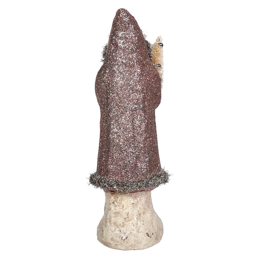 Just like the 'bubbly" there is a tinge of blush pink to this gorgeous Santa. So, get ready to usher in your holiday spirit with the Large Champagne Santa Holding Bottle Brush Tree decoration! This timeless Christmas delight brings the cherished Belsnickel design to life, infusing your home with the magic of the season.