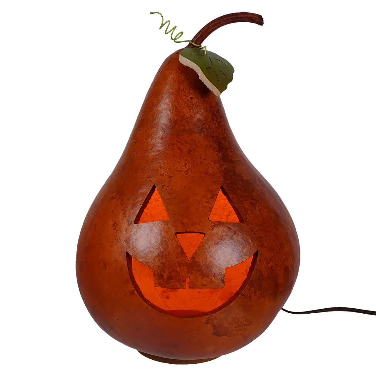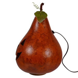 It comes with a 72" light cord and an orange bulb, complete with an on/off switch, so you can easily illuminate Jack's friendly, carved grin. Just remember to avoid using candles or placing this gourd near open flames, as gourds are flammable.
