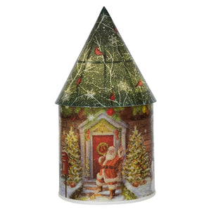 Step into the glow of holiday cheer with the Lighted Holiday Design Green House Luminary With Timer by Gerson Companies—a festive little wonder that’s as charming as it is practical. This cylindrical house features a pointy green roof decorated with branches, delicate snowflakes, and bright red cardinals that perch like holiday messengers. Down below, the base tells a story from every angle: on the front, Santa himself waves a merry greeting from the door, while on the back a jolly snowman shares the spotlight with two mischievous kittens in Santa hats, clearly plotting their next dash through the tinsel.