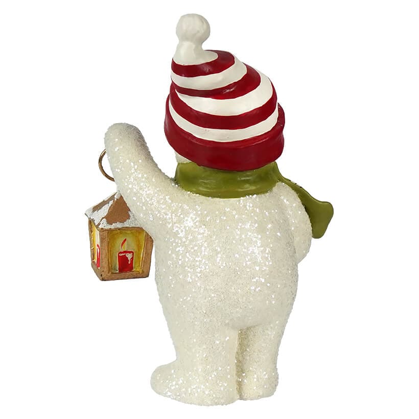 This adorable snowman figure isn't just cute - he's functional too! His lantern serves as a practical light source, perfect for creating a cozy ambiance in your holiday displays. Whether you're decorating a mantel, tabletop, or even using him as one of your unique tree toppers, this Bethany Lowe snowman decor will add a spark of magic to your festive arrangements.