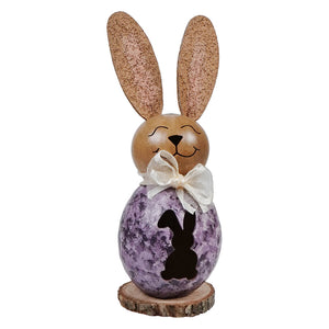 But what makes her truly stand out? It's all in the details, darling! Sporting an oval-shaped torso in a vibrant purple hue and featuring a bunny-shaped cutout that adds a touch of whimsy and charm, Lil' Willow is the epitome of Easter chic.