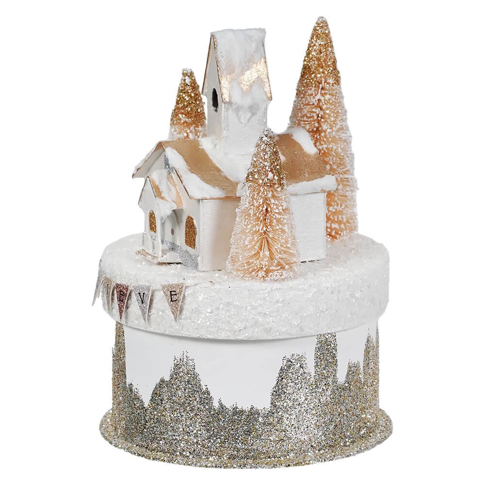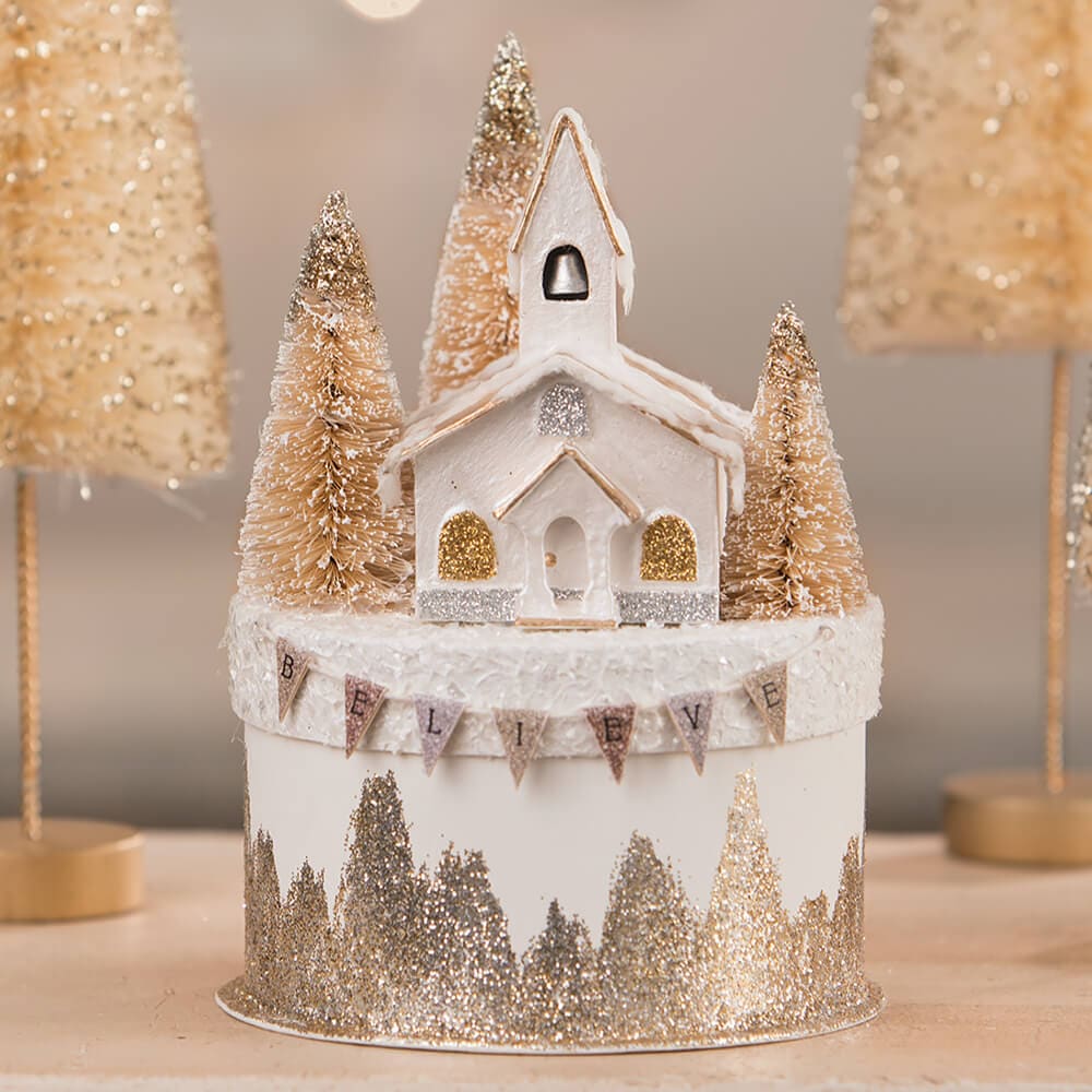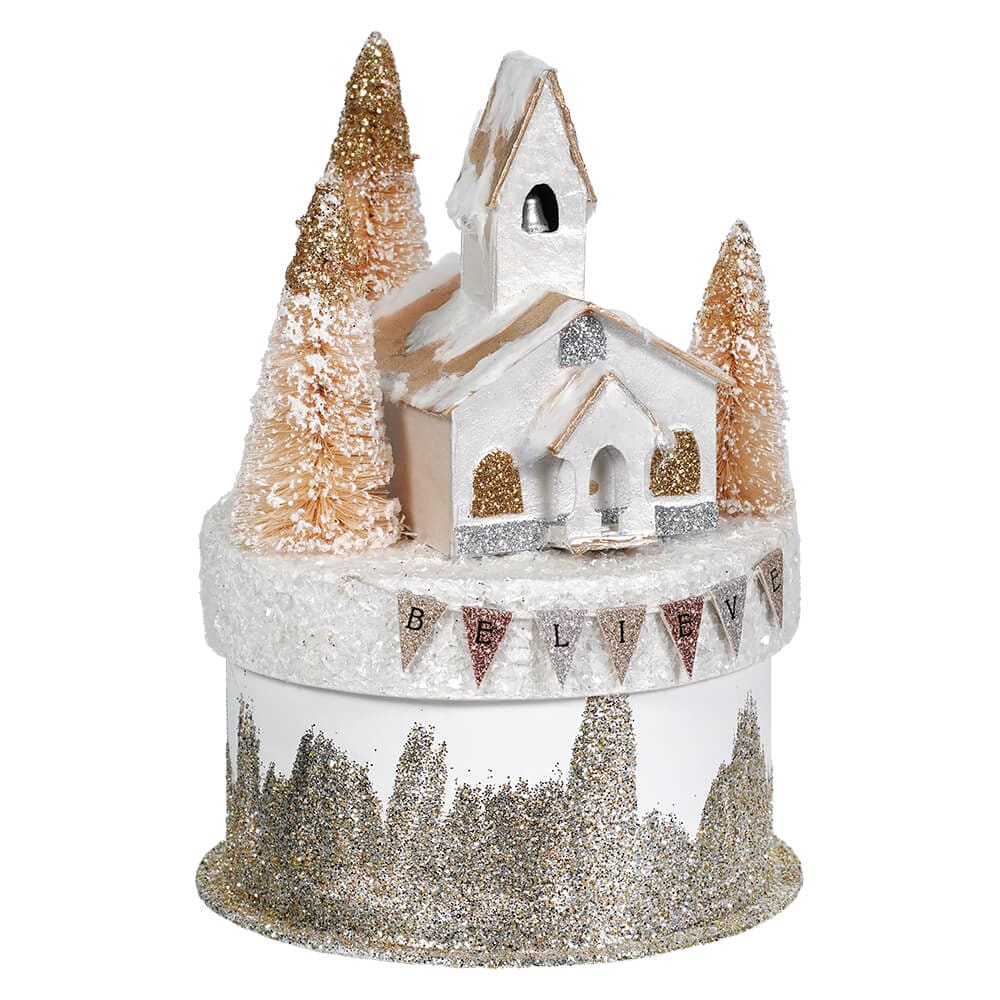 So why settle for the mundane when you can have the extraordinary? Elevate your holiday décor with this exquisite creation from Bethany Lowe Designs. Let this Metallic Church On Box be the shining star of your festive display, reminding everyone who sees it that in the season of miracles, believing is just the beginning of the magic!