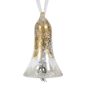 But wait, there's more! The outside of this bell is coated with a lavish layer of gold and silver glitter. It's like a disco ball met a snow globe, and they decided to throw the most dazzling party your tree has ever seen.