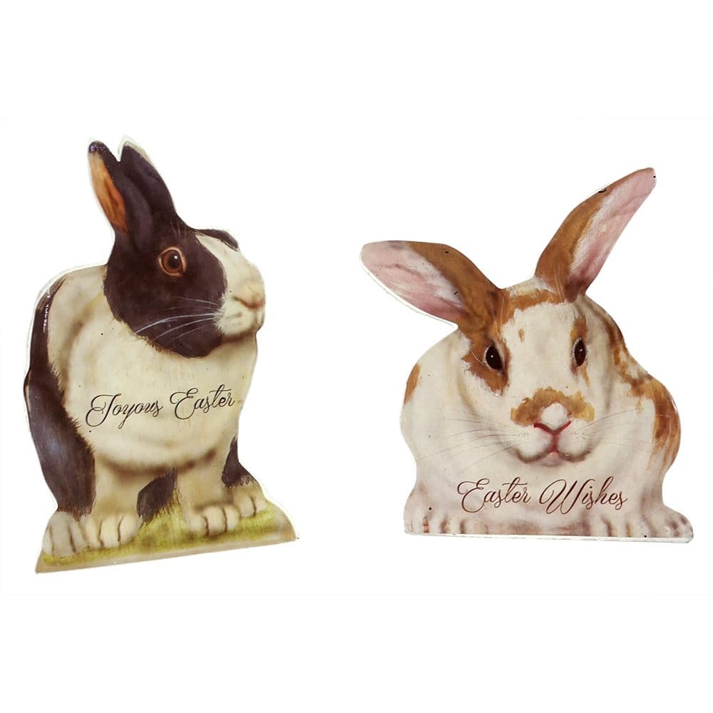 These cute little bunny cut-outs are perfect to use within your Easter display. The easel board makes it easy to decorate for Easter, but also a terrific way to tie a grouping of Easter figures together. One bunny has the words, "Joyous Easter" across the chest and the other has "Easter Wishes". They would also be really cute sitting in a bowl surrounded by all sizes and colors of eggs. These boards are terrific as stand alone pieces or great to mix in with your displays!