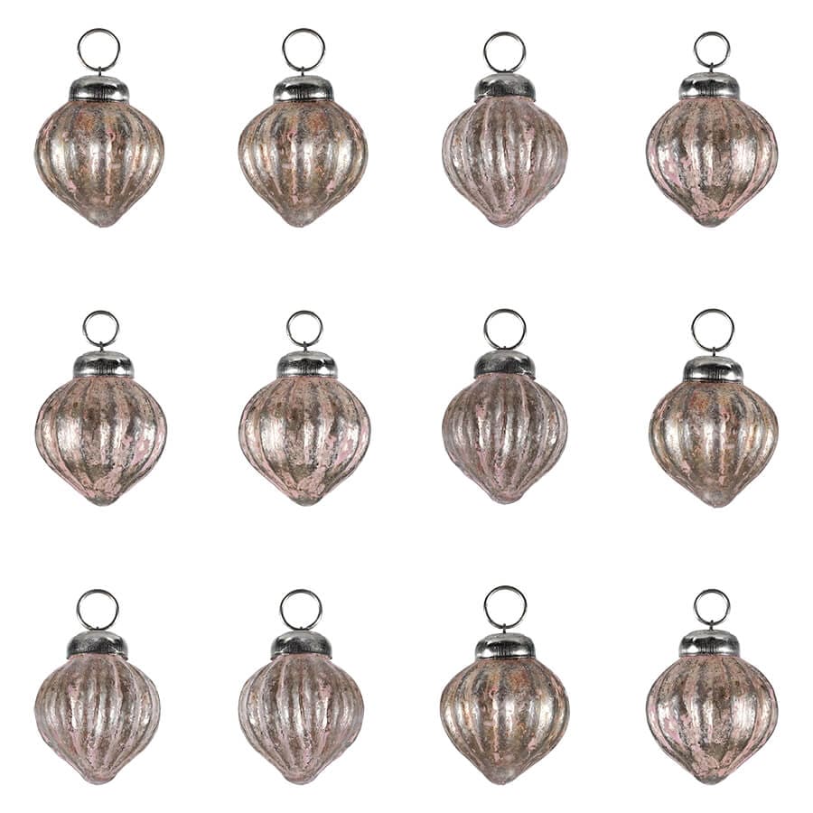 Mini Matte Pink Onion Glass Ornaments Set/12