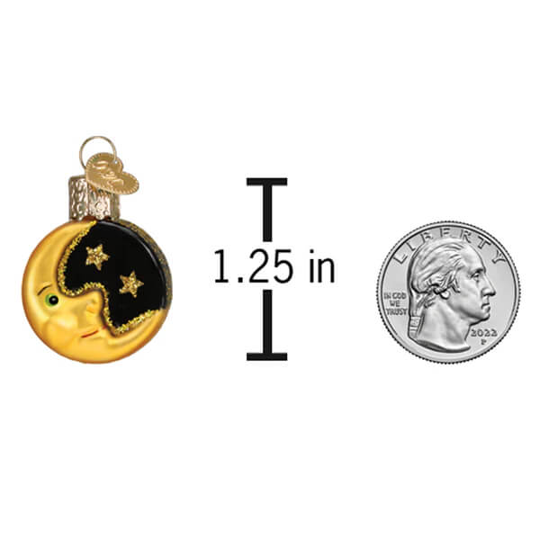 With its softly sculpted face and rich golden glow, this tiny lunar fellow looks like he knows a few bedtime secrets and maybe where the best stardust is buried. Whether he's watching over your tree or tucked into a galaxy-themed display, he brings a peaceful presence with a wink of vintage style.