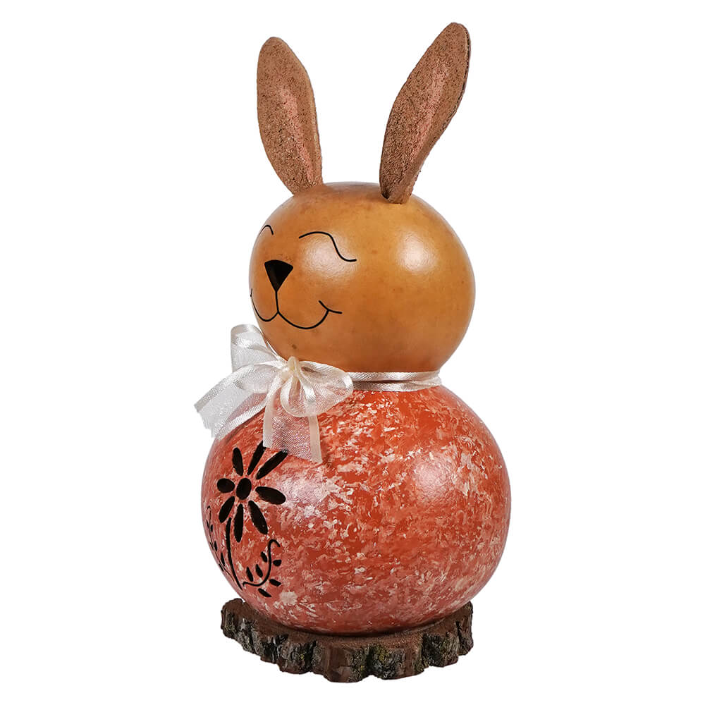 Hop into American handcrafted charm with the Miniature Orange Willow Bunny Gourd with Flower Cutout & Vines by Meadowbrooke Gourds! This sweet little bunny is anything but ordinary—made from a real, hand-carved gourd, she brings a touch of rustic elegance to Easter and springtime decorating. With her warm orange hue, delicate vine detailing, and a charming flower cutout that lets light peek through, she’s ready to brighten up any space.