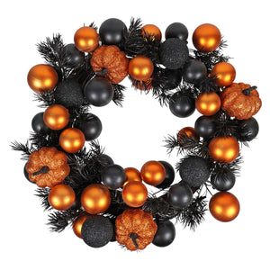 Conjure up some spine-tingling fun with our Orange & Black Pumpkin Ornament Wreath. This enchantingly eerie Halloween decoration casts a spell, featuring a shadowy black wreath decked out in a bewitching mix of black and orange ornaments, along with some spellbindingly glittery pumpkins, adding a dash of wicked charm to your seasonal setup.