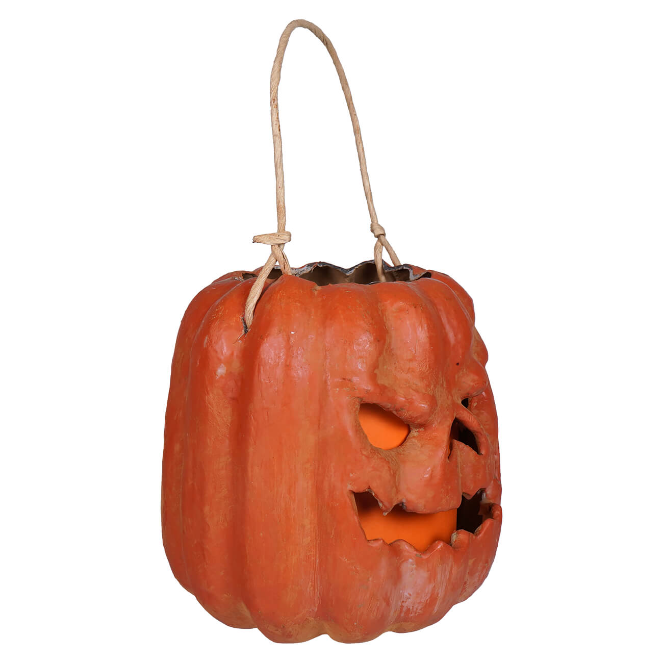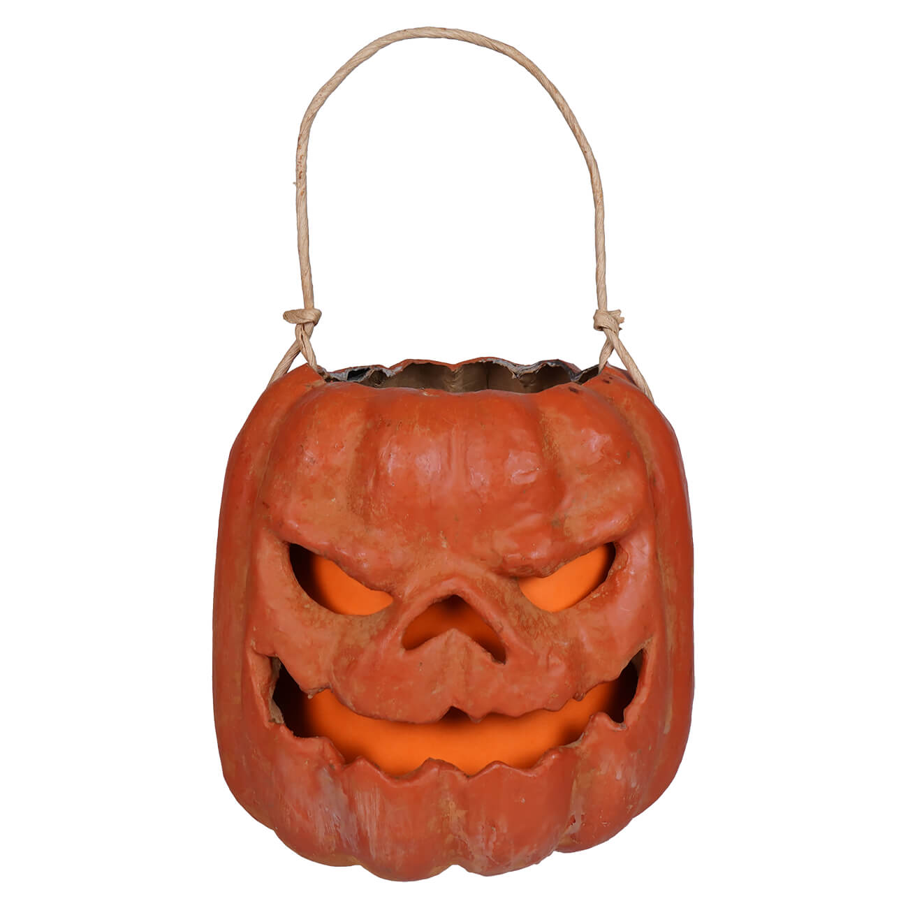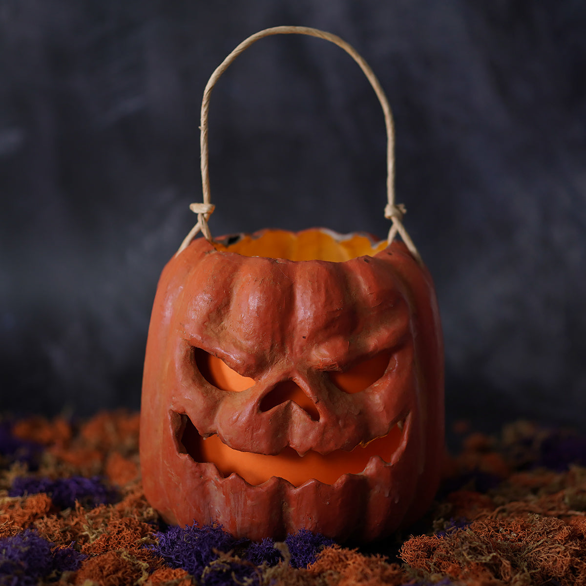 Don’t let the scary face fool you—this pumpkin is sweet at heart. Designed to hold candy (and plenty of it), it’s the perfect companion for door-to-door haunting or tabletop snacking. The cutout features aren’t for lighting—they’re for looking, giving the whole bucket a wonderfully expressive, slightly frazzled personality that makes every handful of treats just a little more fun.