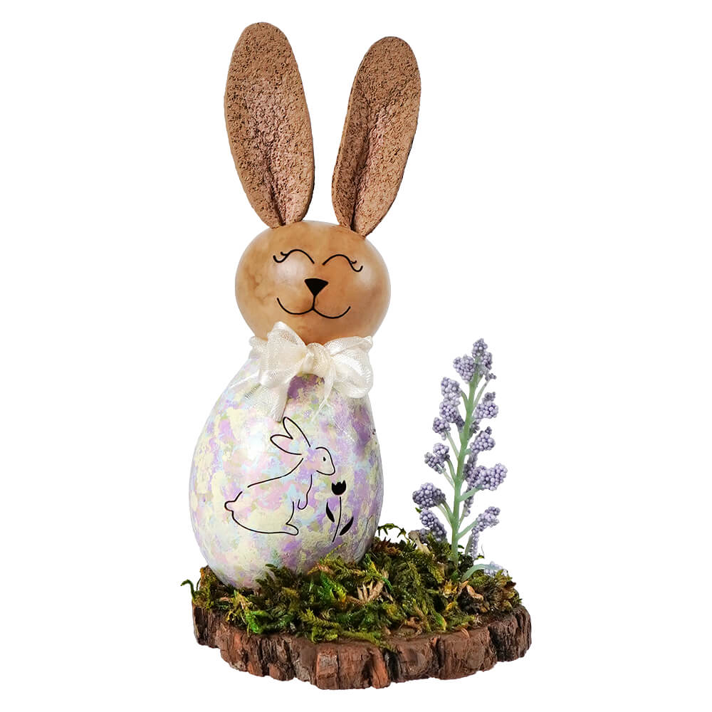 Paige Bunny Gourd Scene With Bunny Cutout & Purple Flower