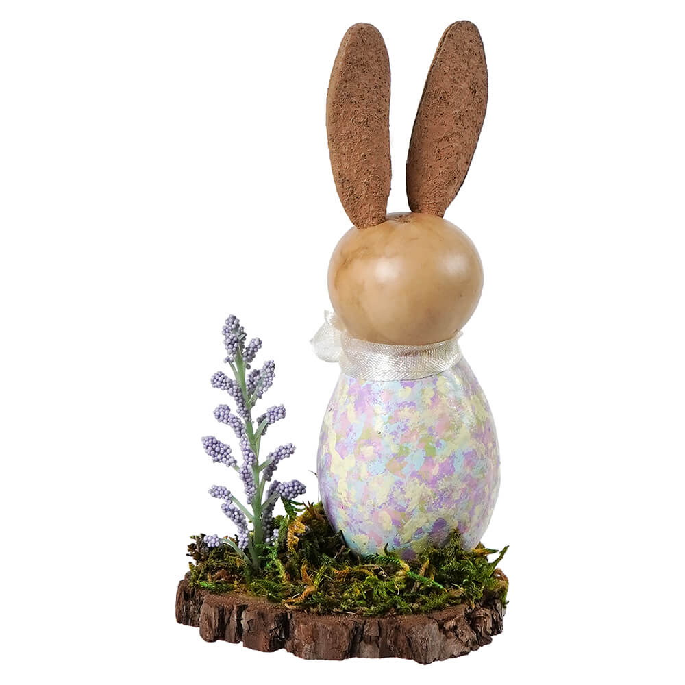 Say hello to springtime elegance with the Paige Bunny Gourd Scene with Bunny Cutout & Purple Flower by Meadowbrooke Gourds! With her soft opalescent glow and delicate white bow, Paige is a vision of springtime charm, standing gracefully beside a blooming lavender plant. Handcrafted from a real gourd, this bunny brings a unique blend of rustic warmth and charming beauty to any seasonal display.