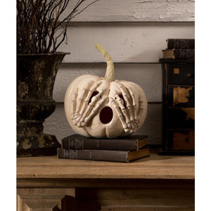 Bethany Lowe Designs' Peek-a-Boo Pumpkin White is not just a decoration; it's a playful companion in your Halloween escapades. Place it on your porch, in your living room, or wherever you need a dose of whimsy. It's the surprise party guest you never knew you needed, ready to light up your spooky celebrations with style and a touch of skeleton charm. Get ready to say, "Boo-tiful!"