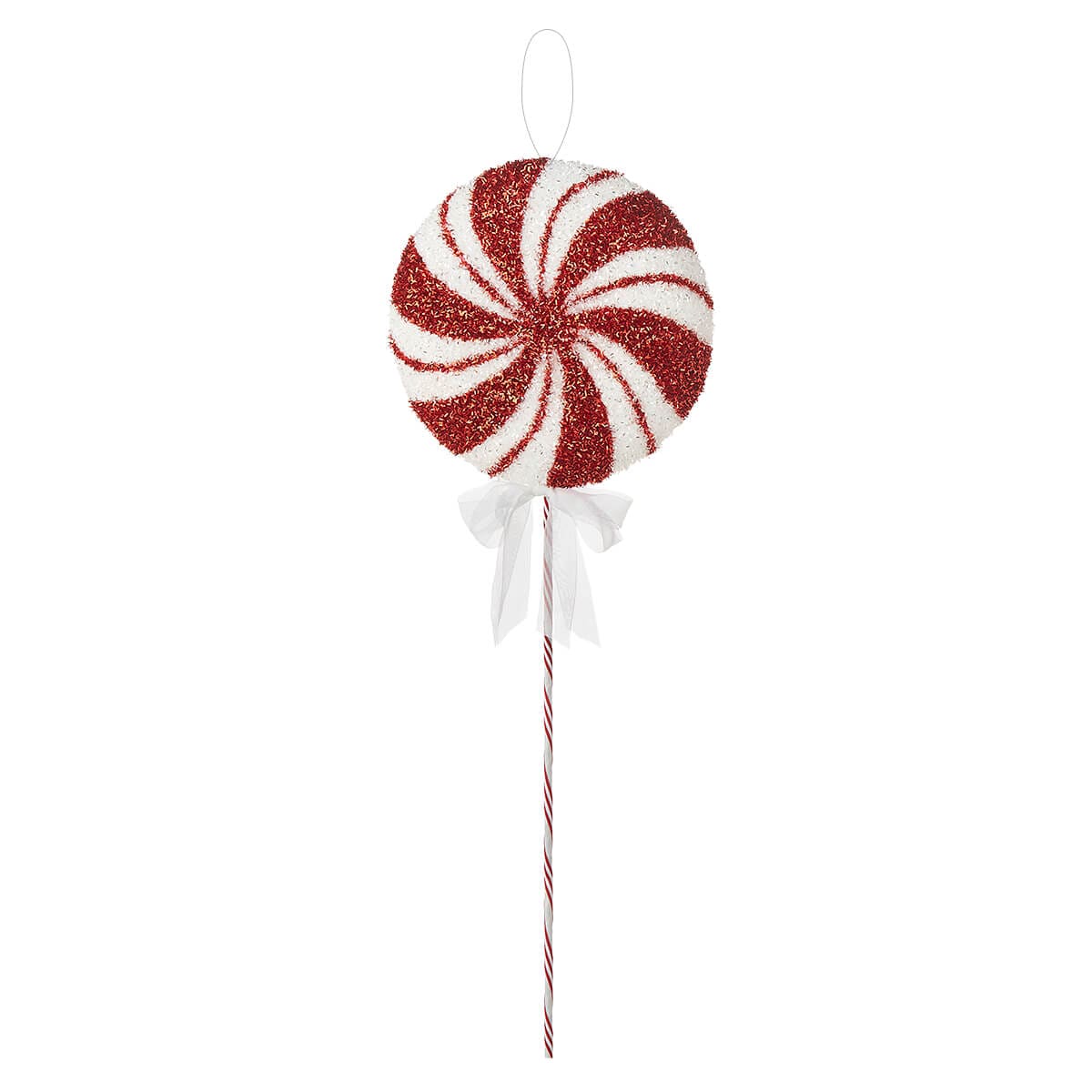 Jump into the festive season with the Peppermint Swirl Lollipop Pick, a striking decoration that promises to be the visual highlight of your Christmas décor. Reaching a towering 28 inches, this hangable piece is a grand imitation of the sweet peppermint treats synonymous with holiday cheer, skillfully crafted from foam and sprinkled with a generous amount of glitter to capture the essence of a classic candy favorite.