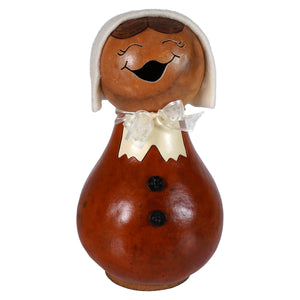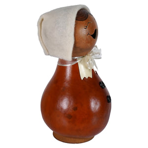 Say hello to the First Lady of Fall—Pilgrim Lady Gourd by Meadowbrooke Gourds! Handcrafted in the USA and dressed in her harvest best, this charming little figure is here to add a dose of colonial cheer to your Thanksgiving décor. With a sweet smile on her face, a crisp white bonnet atop her head, and a matching bow tied neatly around her neck, she’s ready to give thanks—and maybe a side-eye to anyone who double-dips in the cranberry sauce.