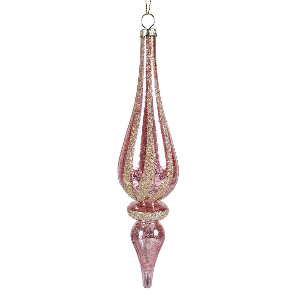Pink Mercury Glass Finial Ornament With Champagne Glitter