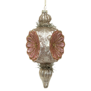 Pink & Silver Mercury Glass Flower Finial Ornament
