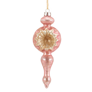 Topping the ornament is a gold indented ball, adding a sparkling contrast that catches the light from every angle. The combination of pink and gold makes it an eye-catching piece, perfect for mixing with other ornaments or letting it shine solo as a statement accent.