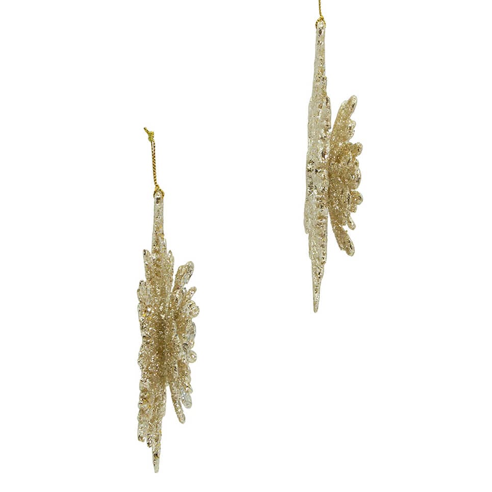 Picture it: two ornaments that gleam like freshly fallen snow under the winter moonlight. With platinum glitter adorning their ends and a luxurious gold center, they're sure to catch the eye of even the most discerning decorator.