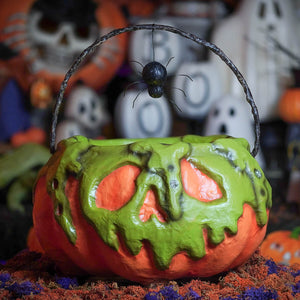The Poison Pumpkin Cauldron by Bethany Lowe is brewing up trouble — and it's bubbling over in style! This sinister pumpkin has a toxic twist, with vibrant green sludge oozing down its sides in the unmistakable shape of a skull. Whatever’s cooking in there is clearly not FDA-approved.