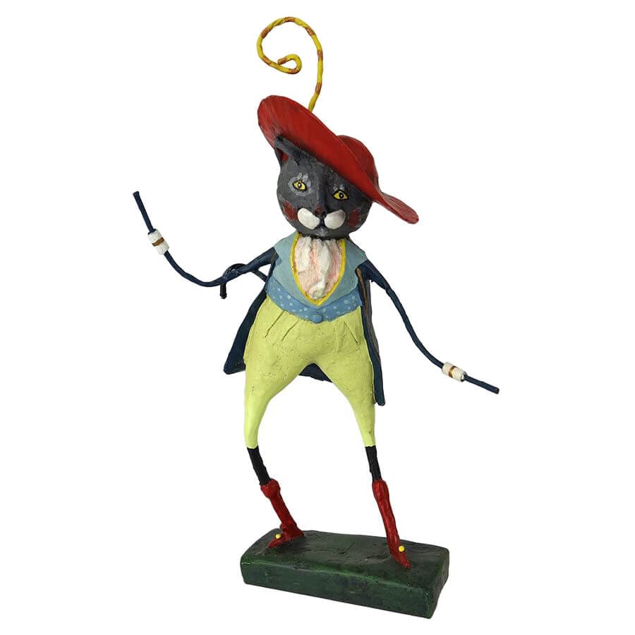 In the magical world of fables and folklore, Puss n' Boots comes to life in the delightful figure crafted by Lori Mitchell. Dressed in a charming ensemble of a vest, breeches, and a fabulous red hat with a plume, this feline adventurer captures the essence of this timeless tale.
