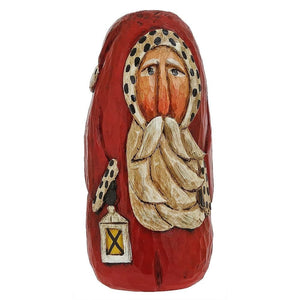 Santa’s ready to light the way with his trusty lantern in hand! This Red Santa with Lantern from the Whispering Pines Carving Collection is a unique 6-inch resin figure with a stylized, egg-shaped design that’s as eye-catching as it is adorable. Dressed in a bold red coat trimmed with playful spotted accents, Santa’s long, feathery beard and exaggerated nose give him a whimsical personality that makes him stand out in any holiday display.