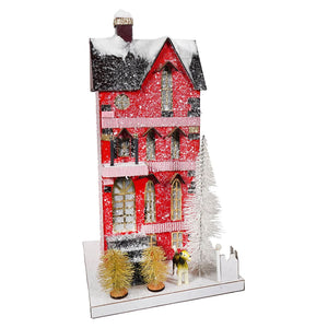 Whether you're a collector of Christmas village scenes or simply looking to infuse your holiday decor with nostalgic charm, the Red Townhouse is a must-have piece. Its meticulous craftsmanship, festive details, and potential for illumination make it a standout feature in any seasonal arrangement, evoking joy and wonder for all who behold it.