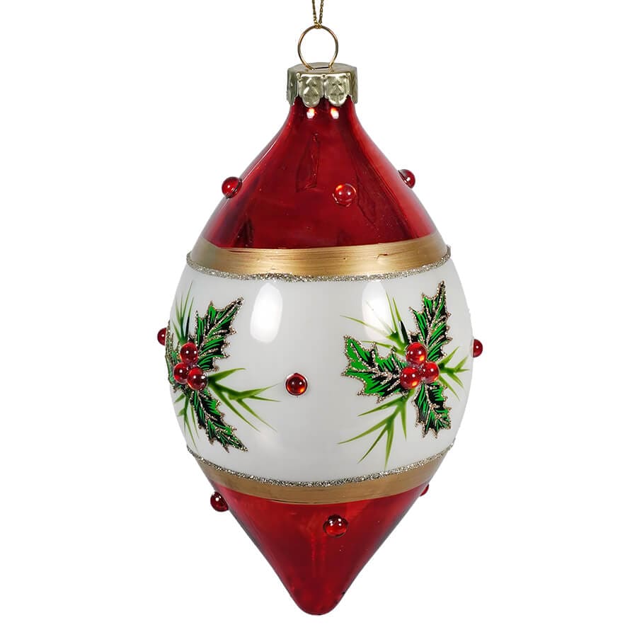 Whether you're initiating or augmenting your ornament collection, the "Red & White With Holly Finial Glass Ornament" stands out as a remarkable contender. Adorn your tree, suspend it from a chandelier, or offer it as a memorable gift; its charm and festive spirit will undoubtedly brighten any setting.