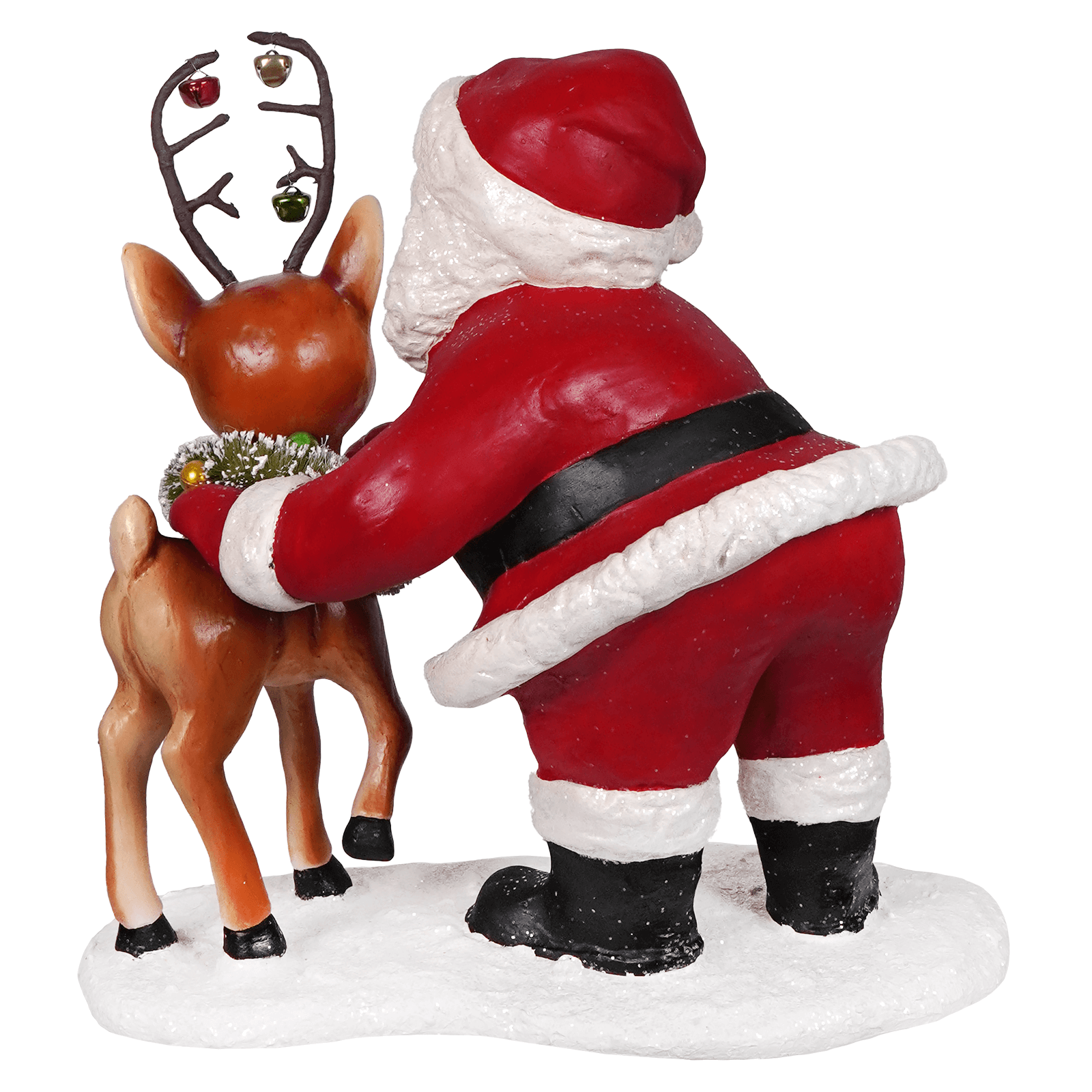 This large tabletop figure evokes the joyful innocence of vintage Christmas mornings, when tinsel shimmered, cocoa steamed, and the world felt wrapped in magic. Crafted with Bethany Lowe’s signature attention to nostalgic detail, every brushstroke and flourish seems to hum a carol from the 1950s. Place this duo as a centerpiece for your mantel, entryway, or buffet table, and let their presence instantly transport you to a time when Santa was always watching, reindeer were forever ready for flight, and holiday joy sparkled brighter than any ornament. It’s a classic Christmas vignette brought beautifully—and festively—back to life.