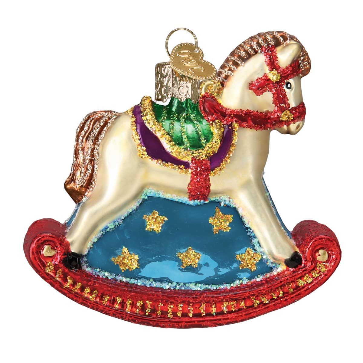An interesting fact is rocking horses were originally designed as a method for jousting training! Rocking horses have existed for many centuries, but it wasn't until the 17th century that the toy form of the rocking horse appeared. Since then it has been a much desired toy for children, found in nurseries and play rooms everywhere. This Rocking Horse Ornament recalls many of the dreams and fantasies of childhood, with bright colors and glittery gold stars that twinkle on your Christmas tree.