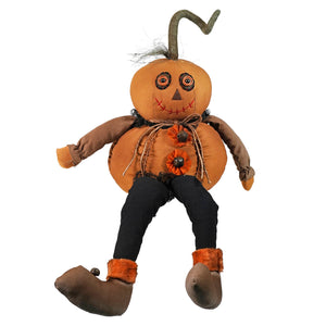 The pumpkin’s warm, earthy tones complement any fall display, whether it’s nestled among gourds, paired with a cluster of candles, or perched alone to steal the spotlight on a shelf or windowsill. Its rustic style evokes a sense of handmade tradition, reminiscent of a cozy farmhouse in the heart of autumn, while the dangling legs inject a touch of playful humor that will bring smiles to anyone who sees it.