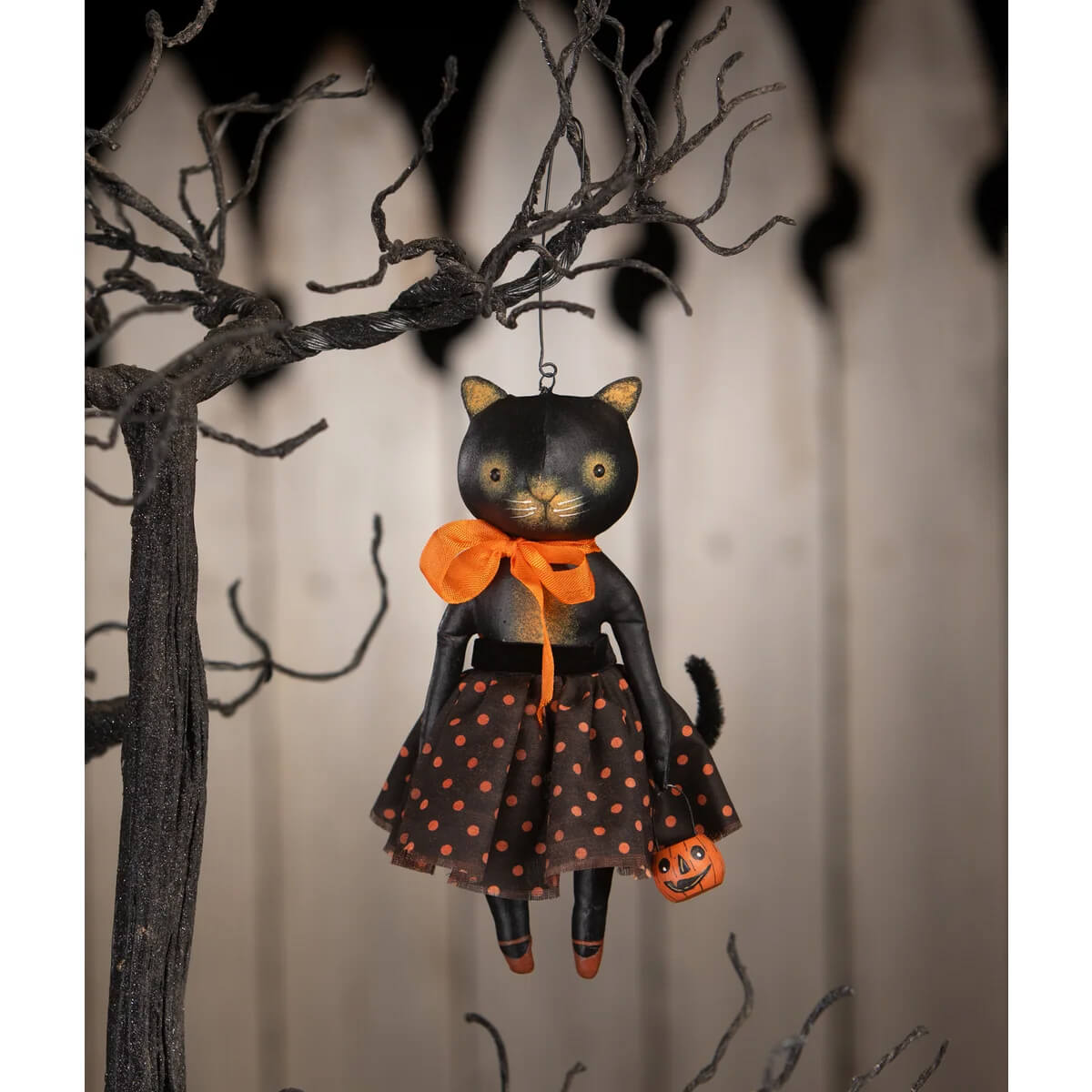 With her mischievous golden eyes and sleek black fur, Sabrina looks like she just stepped out of a vintage Halloween postcard. Whether she’s prowling through your spooky tree or adding a touch of feline flair to a seasonal display, this ornament is sure to cast a spell on all who see her.
