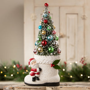 Hand-painted resin, bottle brush, beads, fabric, and glitter.