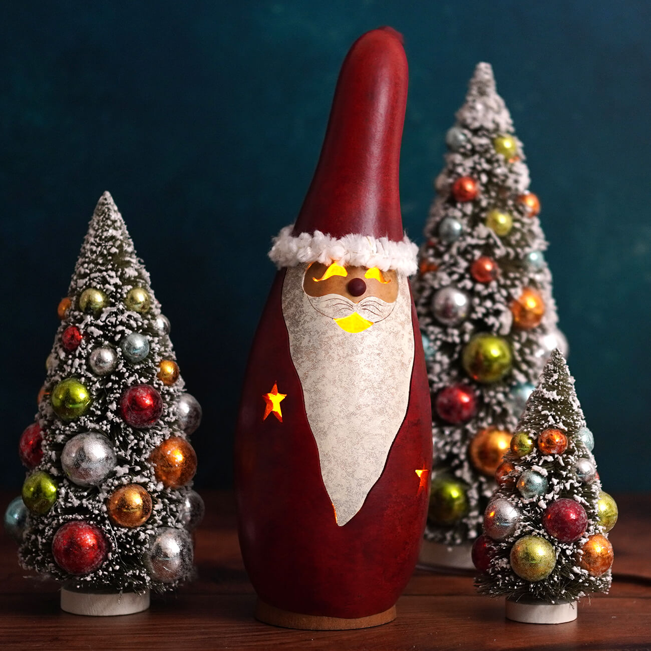 The Santa – Lighted Medium Tall Red Gourd by Meadowbrooke Gourds brings a warm holiday glow in a classic, handcrafted style. Standing tall in his bright red suit with a jolly expression, he’s the kind of Santa who makes a statement without saying a word.