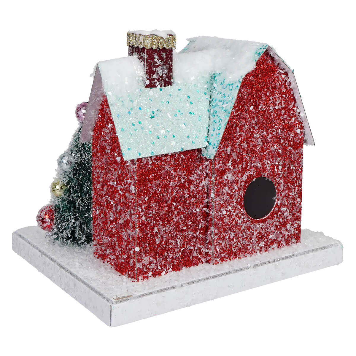 For an extra dose of holiday glow, the house features a discreet hole in the back for inserting a C7 light cord (not included). Once illuminated, the arched windows and frosted details create a soft, warm ambiance, making this piece a standout addition to any mantel, table, or holiday village display.