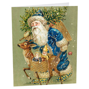 Whether you're mailing them to family across the country or handing them out at your annual holiday gathering, these vintage-style cards are sure to bring a smile. Spread the warmth of the season with this delightful Santa & Reindeer card set, filled with festive charm and the joy of Christmases past.