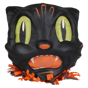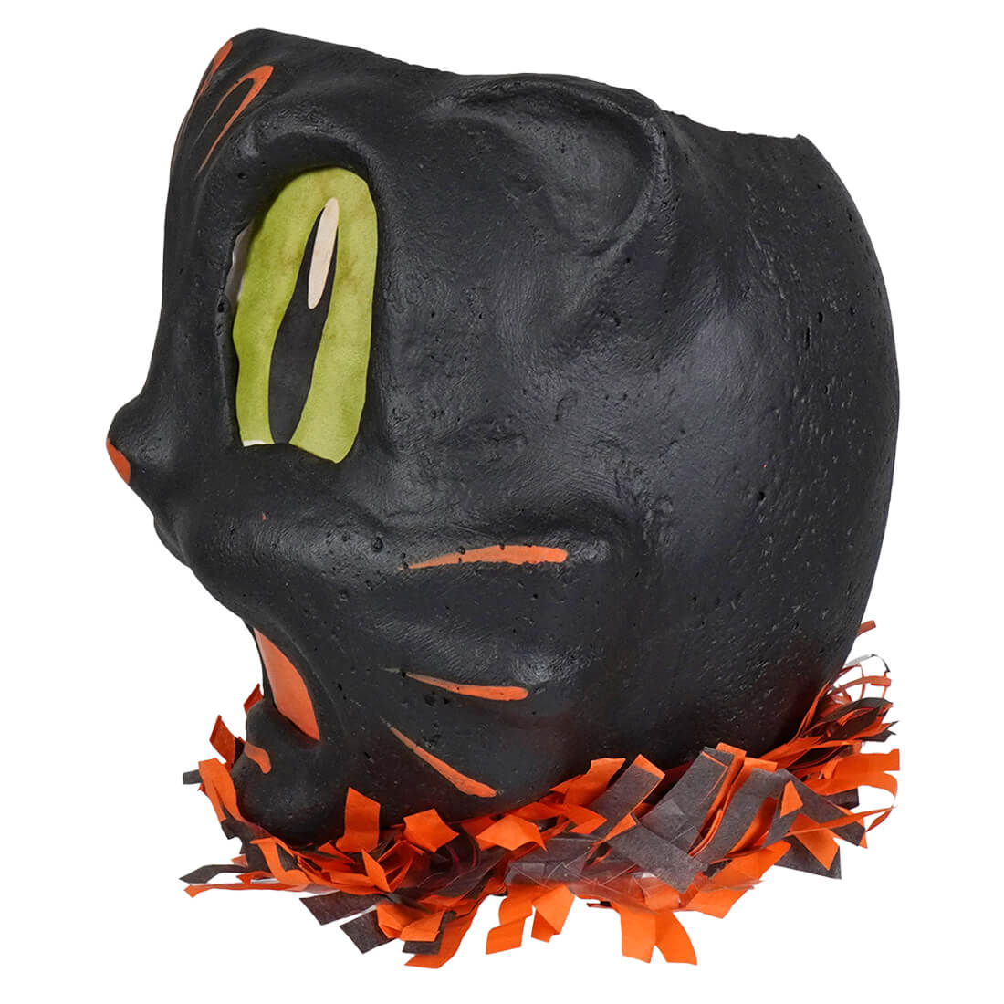Crafted with vintage Halloween charm and a hefty dose of theatrical flair, this lantern is all about the drama. The open top of the cat’s head makes room for a flickering tea light or LED candle (or, let’s be honest, a few emergency candy stashes). And don’t miss the finishing touch: a ruffled paper collar in classic Halloween black and orange, because even a frightened feline deserves to look festive.