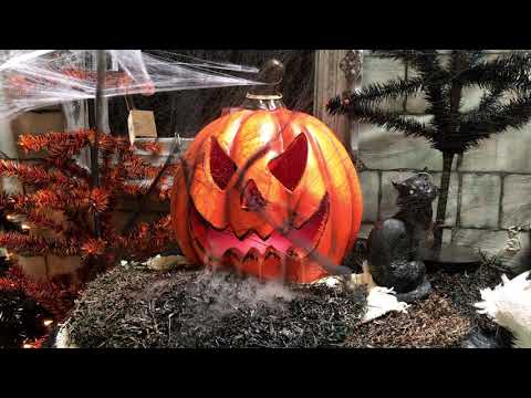 14" Lighted Sinister Magnesium Smoking Halloween Pumpkin