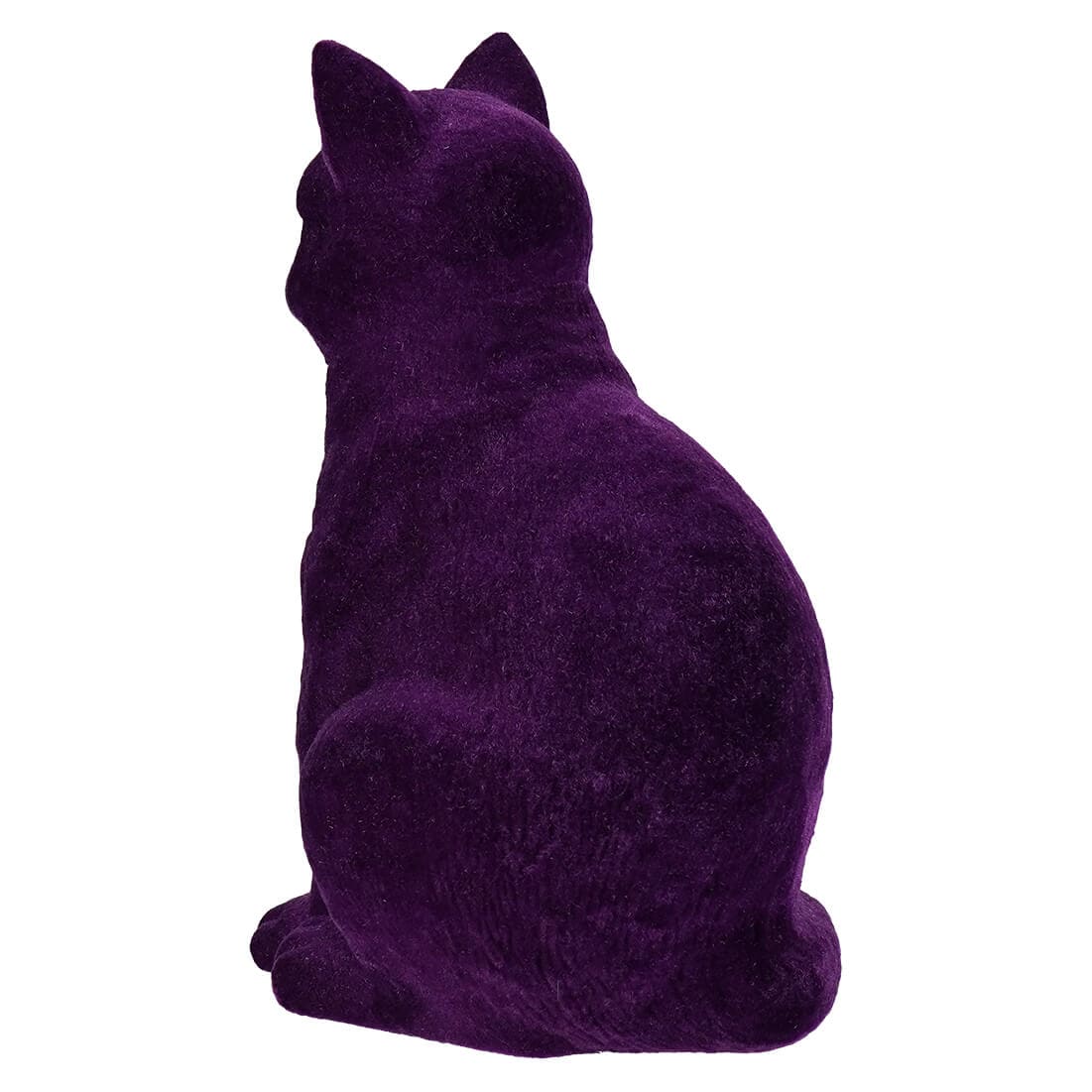 The Sitting Flocked Green-Eyed Purple Cat offers a playful yet sleek addition to any space with its bold color and intriguing design. Standing 10 inches tall, this feline is covered in a soft, flocked purple finish that draws attention with its velvety texture. Its mesmerizing green eyes seem to sparkle, adding a touch of mystery and intrigue to its gaze.