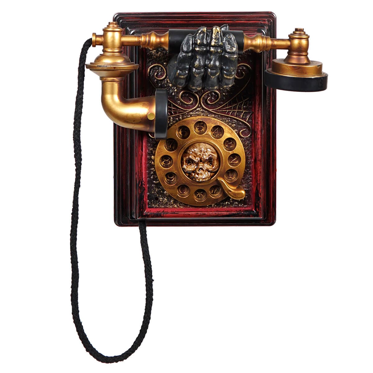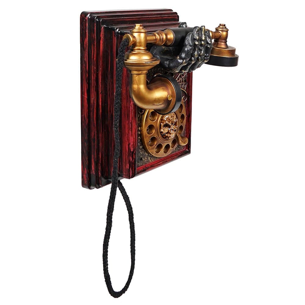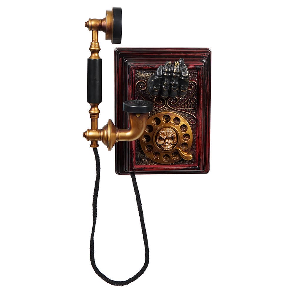 - Says the spooky phrases: "Just letting you know that I'm already in the house... and I'll see you soon! Hahahaha!", ""Hello this is the Grim Reaper... just letting you know that your soul is past due!", & "Hello, Hello? You've got to listen to me! Whatever you do, do not open the door! Those aren't trick or treaters and they're not here for the party!"
