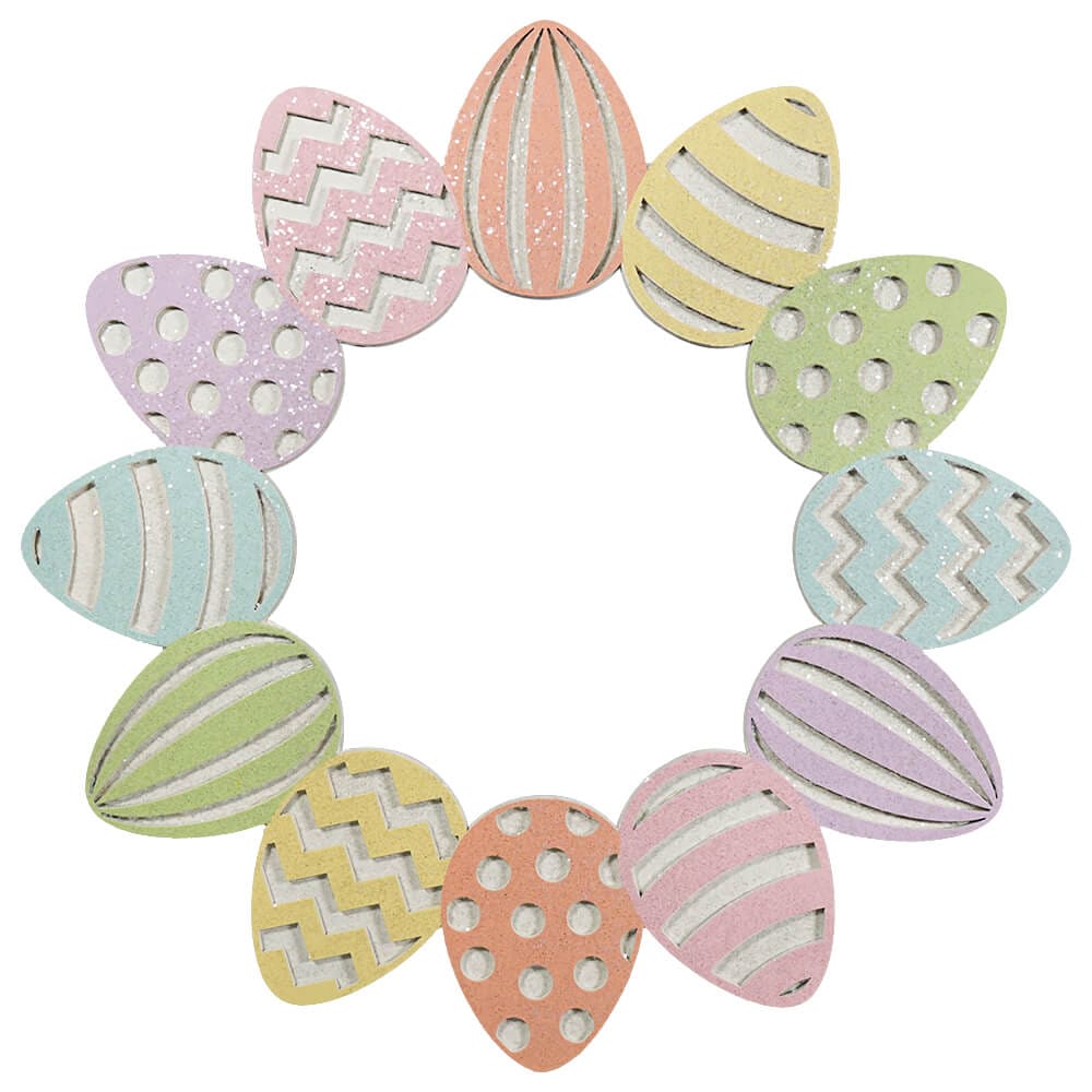Brighten up your celebrations this Easter with a bold and beautiful Rainbow Egg Wreath! This stunning one sided 16 inch wreath is filled to the brim with colorful eggs in cheery pastel shades that come adorned in stripes, spots or zig-zags. Hang it on your door for a guaranteed splash of seasonal cheer, or gift it to a friend as an unforgettable surprise - either way you just can't go wrong when adding this rainbow splash of color to your festivities!