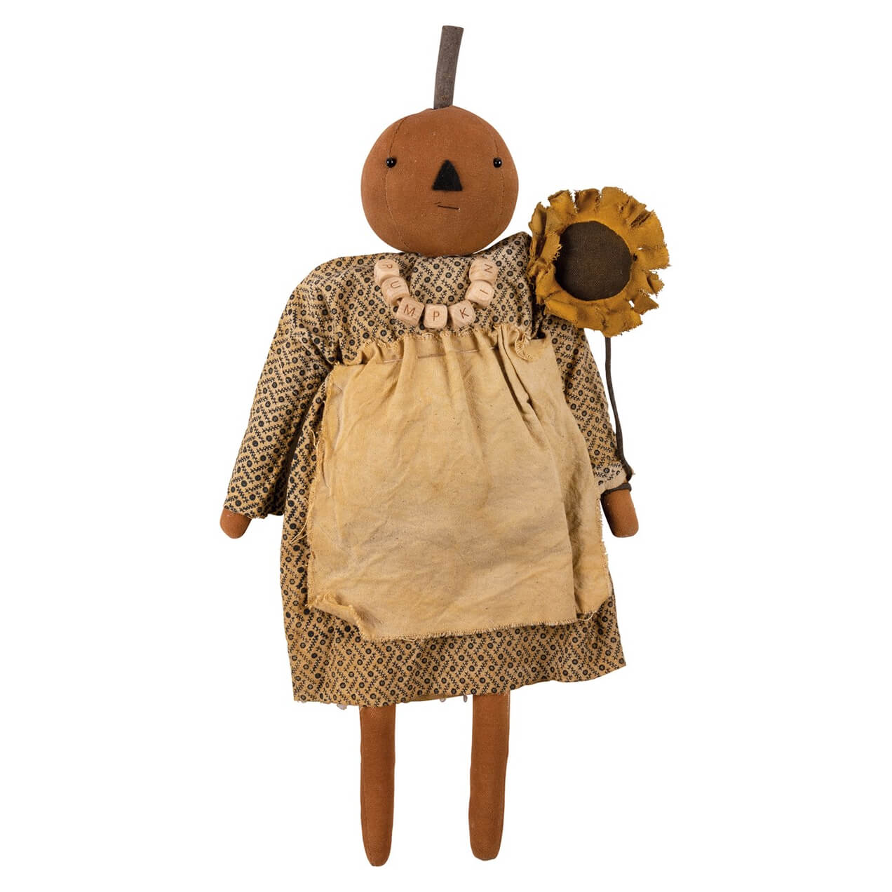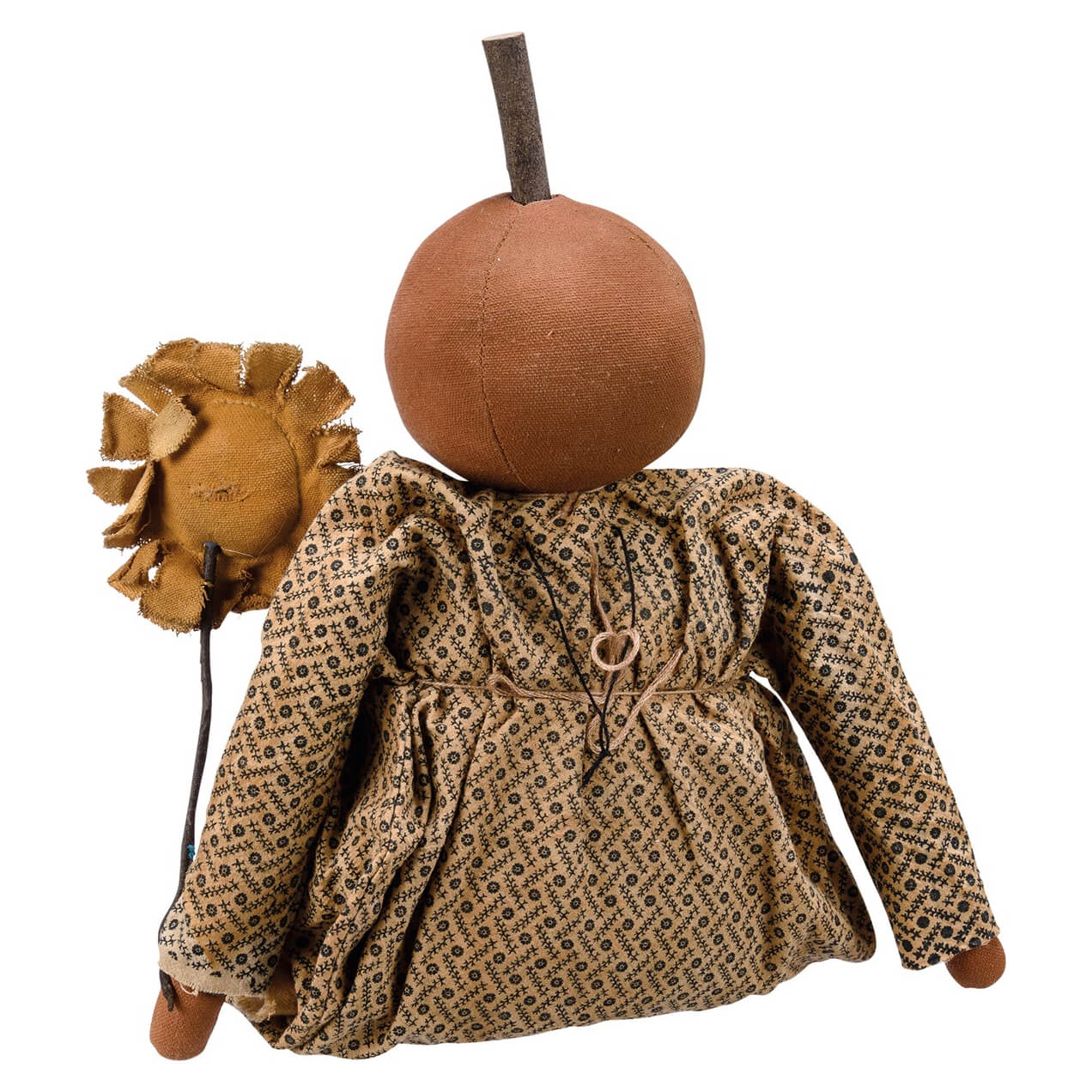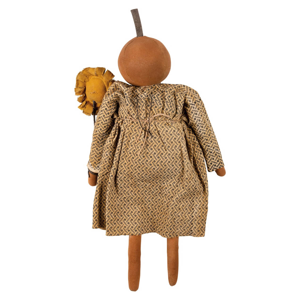 Meet Sunflower Susie, the harvest cutie who proves that pumpkins aren’t just for pies! Designed by Kari Emerson for Primitives by Kathy, this sitting doll brings a whole bushel of charm to your autumn décor—starting with her adorable pumpkin head and that sunny disposition that says, "I’m here for the fall vibes and the fall vibes only."