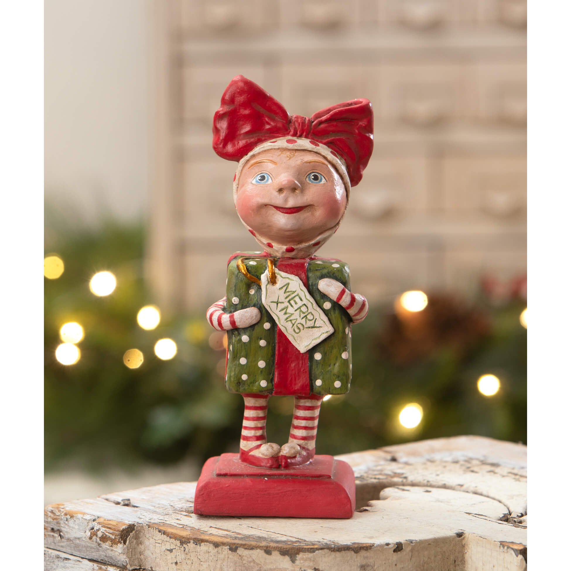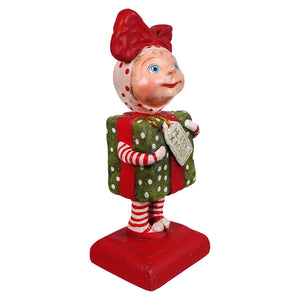 Whether displayed with other Debra Schoch characters or added to a festive vignette, Surprise Package Girl brings a playful, heartwarming touch to your holiday décor.
