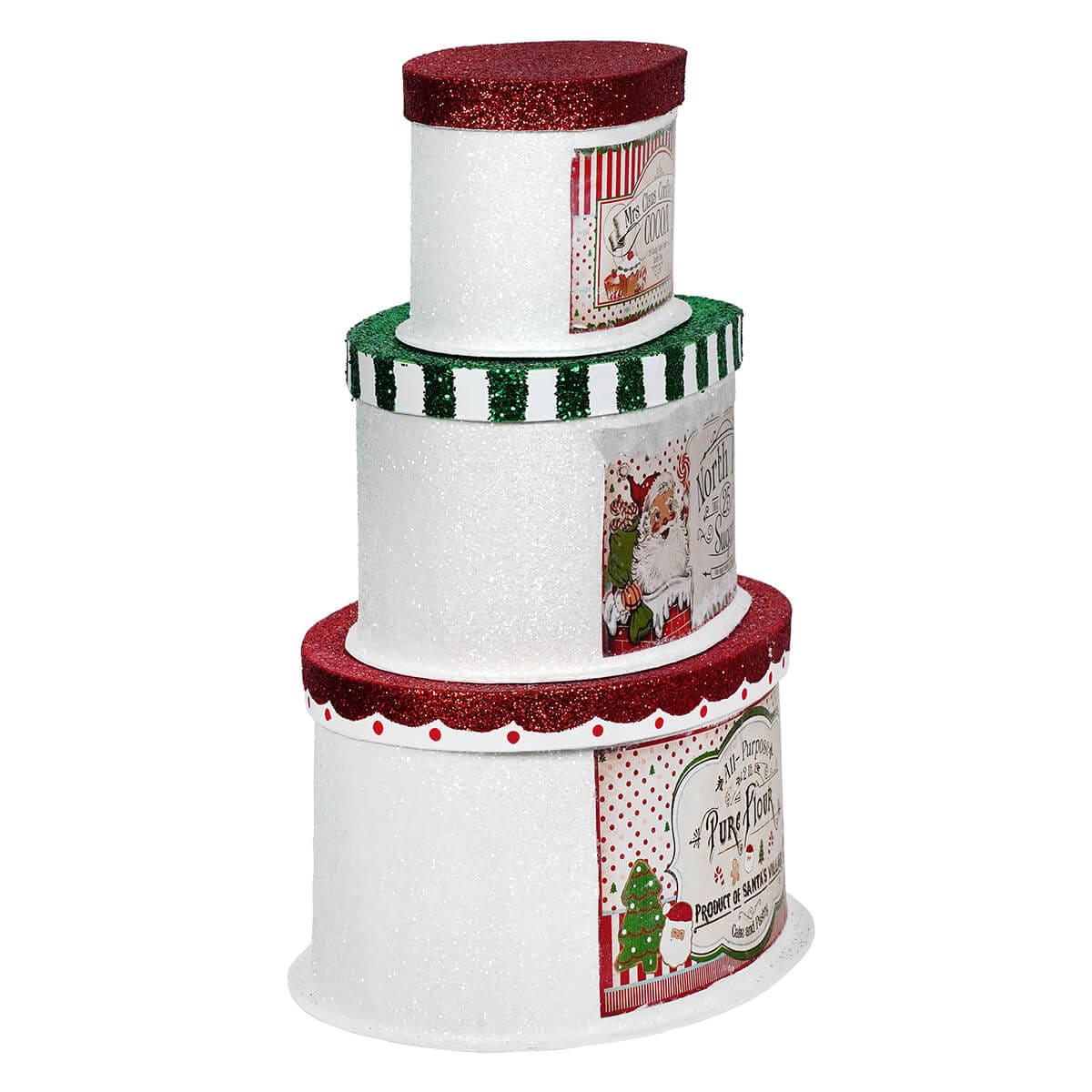 With a dash of North Pole charm this Sweet Tidings Christmas Boxes Set is a festive trio of nesting boxes, that are the epitome of holiday spirit, each one sparkling with a dusting of glitter on pressed paper that catches the light and the imagination.