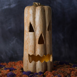 Perch it on your porch for a sophisticated scare, or let it steal the spotlight indoors as a centerpiece with attitude. Pair it with moody florals, black cats, or other heirloom-style gourds for a display that’s more “stylish sorcery” than “plastic party store.” With the Tall Mustard Pumpkin Jack-O'-Lantern, your décor will be serving spooky-season chic—no carving knife required.