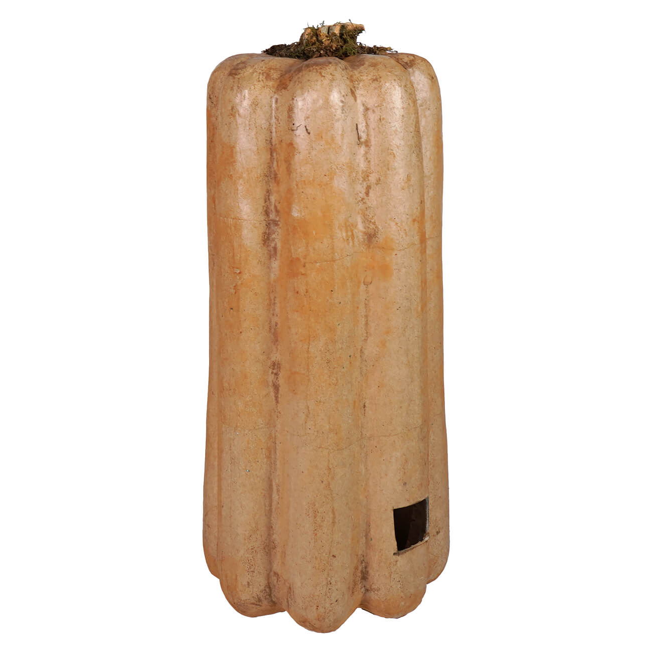 Move over, classic orange—there’s a new gourd in town, and it’s dressed in haute harvest couture. The Tall Mustard Pumpkin Jack-O'-Lantern by Rags A. Muffin Junction brings a moody, modern twist to your Halloween display with its rich mustard hue, elongated shape, and hand-sculpted charm. Crafted in America from hand-painted paper mache and lightly dusted with cinnamon, it’s a jack-o’-lantern that’s got both spice and style. Each one is uniquely made, meaning your pumpkin will never be caught in a squashy case of déjà vu.