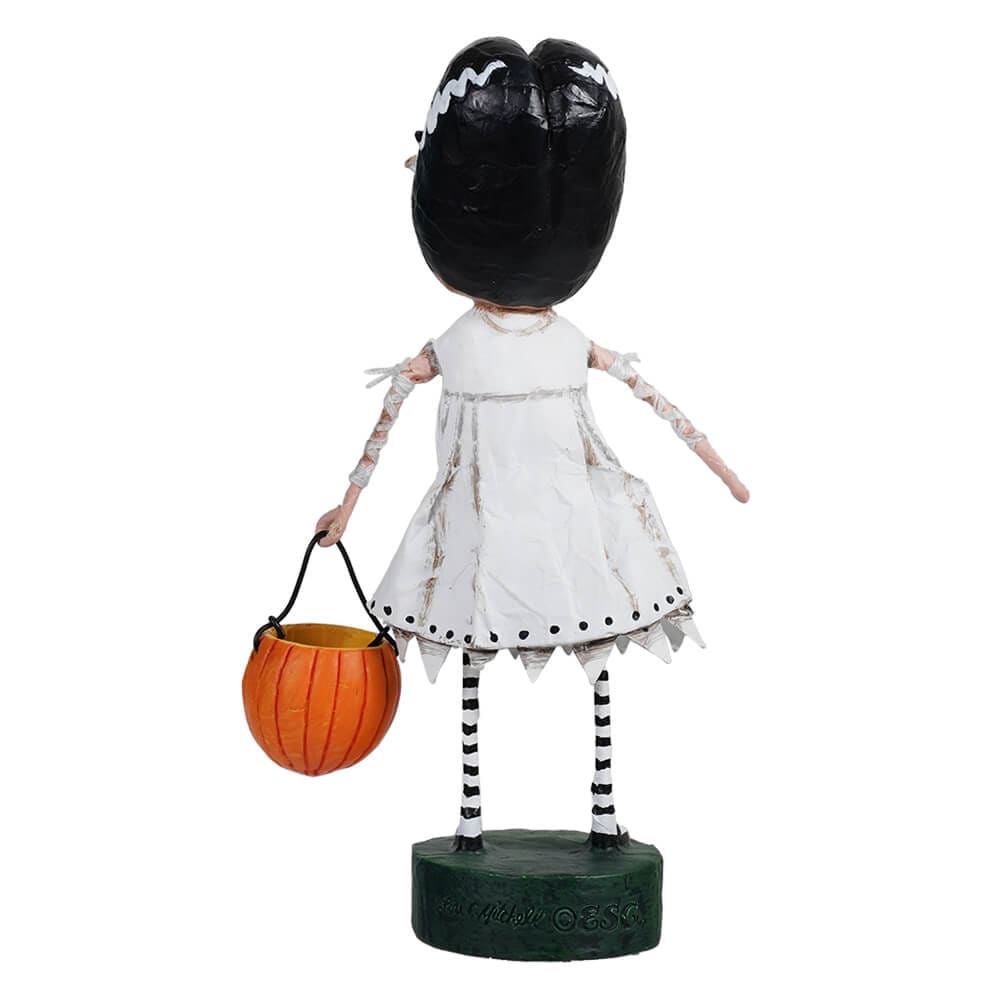Frankenstein's heart leaps with joy as his long-awaited dream finally comes true—a mate created just for him! Behold the magnificent creation, the Bride of Frankenstein for the Lori Mitchell trick or treat figures collection. A mesmerizing addition, especially when paired with Frankie, to your Halloween collection. It is a sight to behold, my friends!